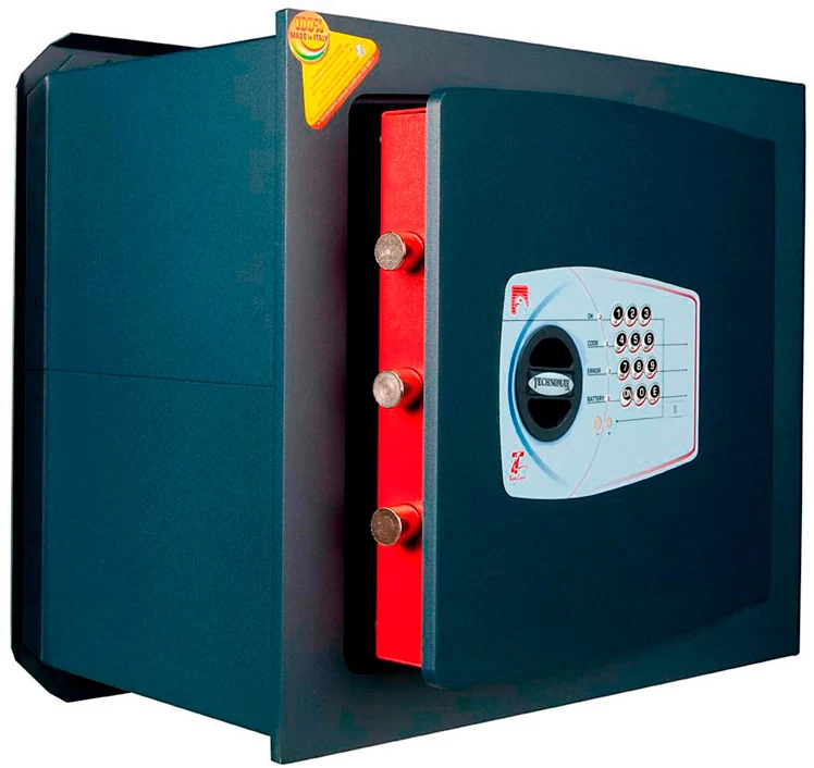 На сейф Technomax GT/6LP устанавливается итальянский электронный замок, обладающий повышенной секретностью. Металлическая пластина из особого твёрдого сплава служит для защиты области замка от орудий взлома.